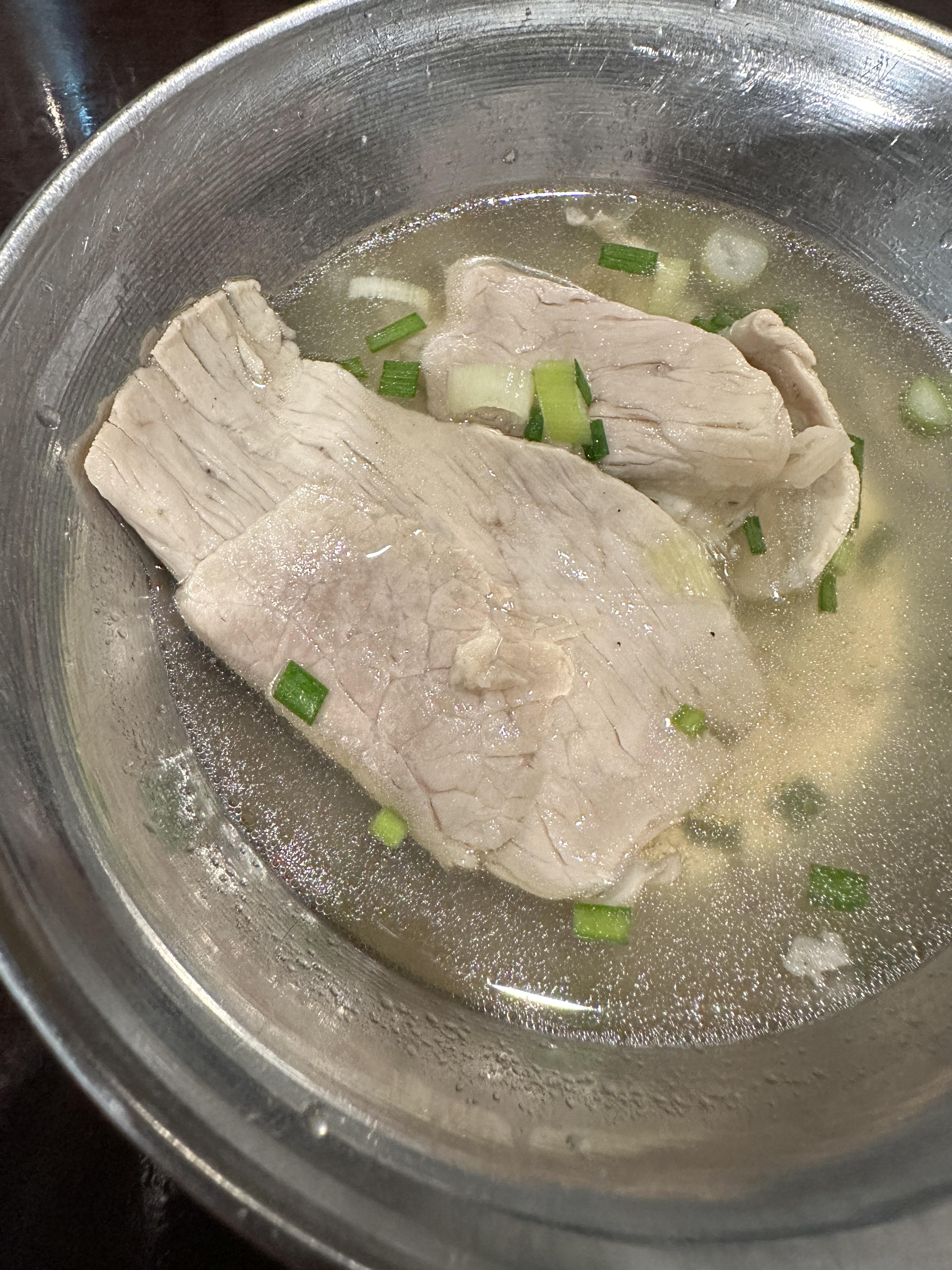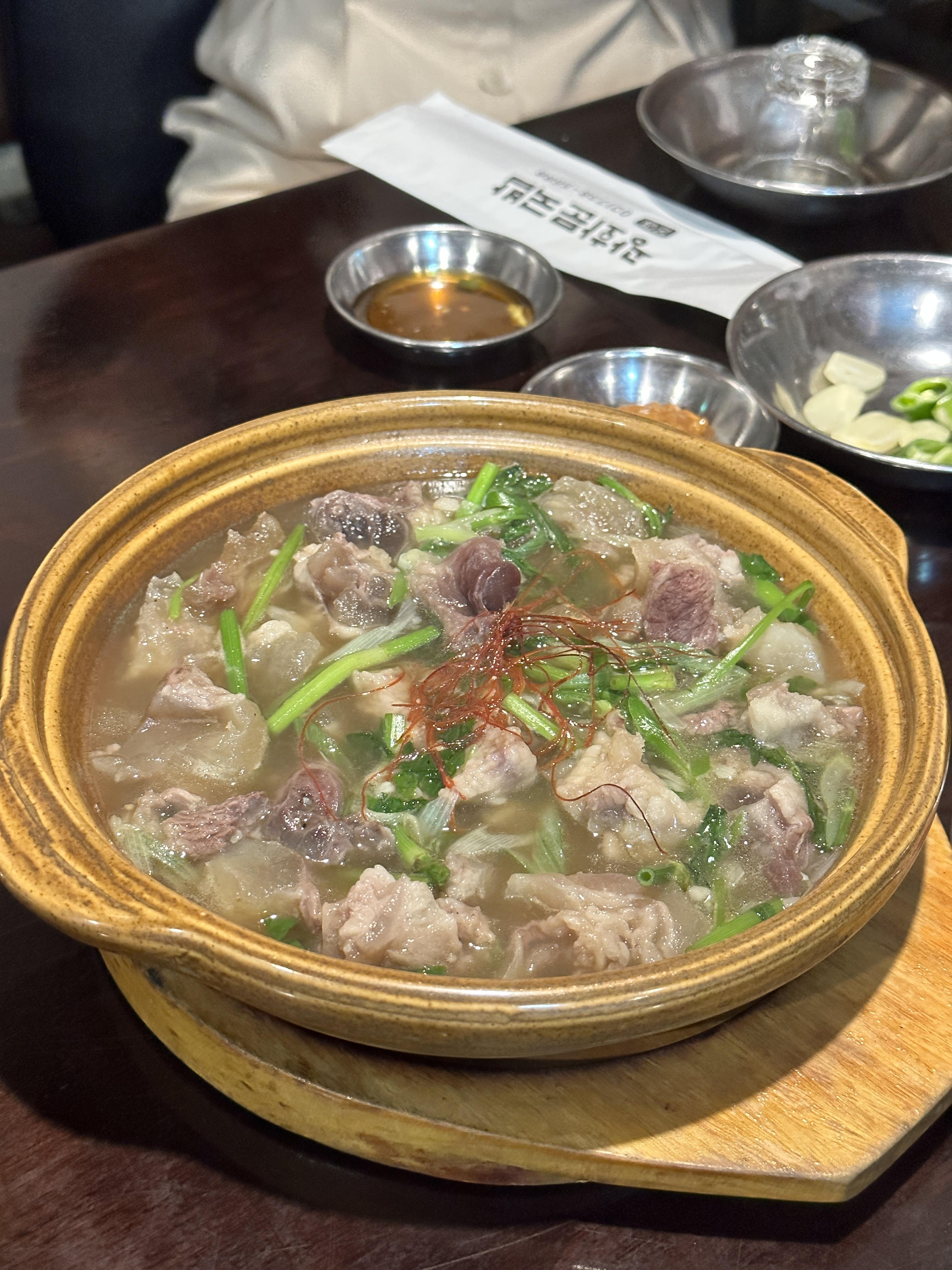 따로 시켰던 돼지국밥도 고기가 크고 맛있었는데요. 사람 취향에 따라서 밍밍하게도 느낄 수도 있을 것 같습니다. 스지찜을 시켜서 1인 1국밥으로 시키기에는 너무 많을 것 같아서 하나만 시켰는데요. 다음에는 꼭 온전히 한 그릇을 먹고 싶습니다.