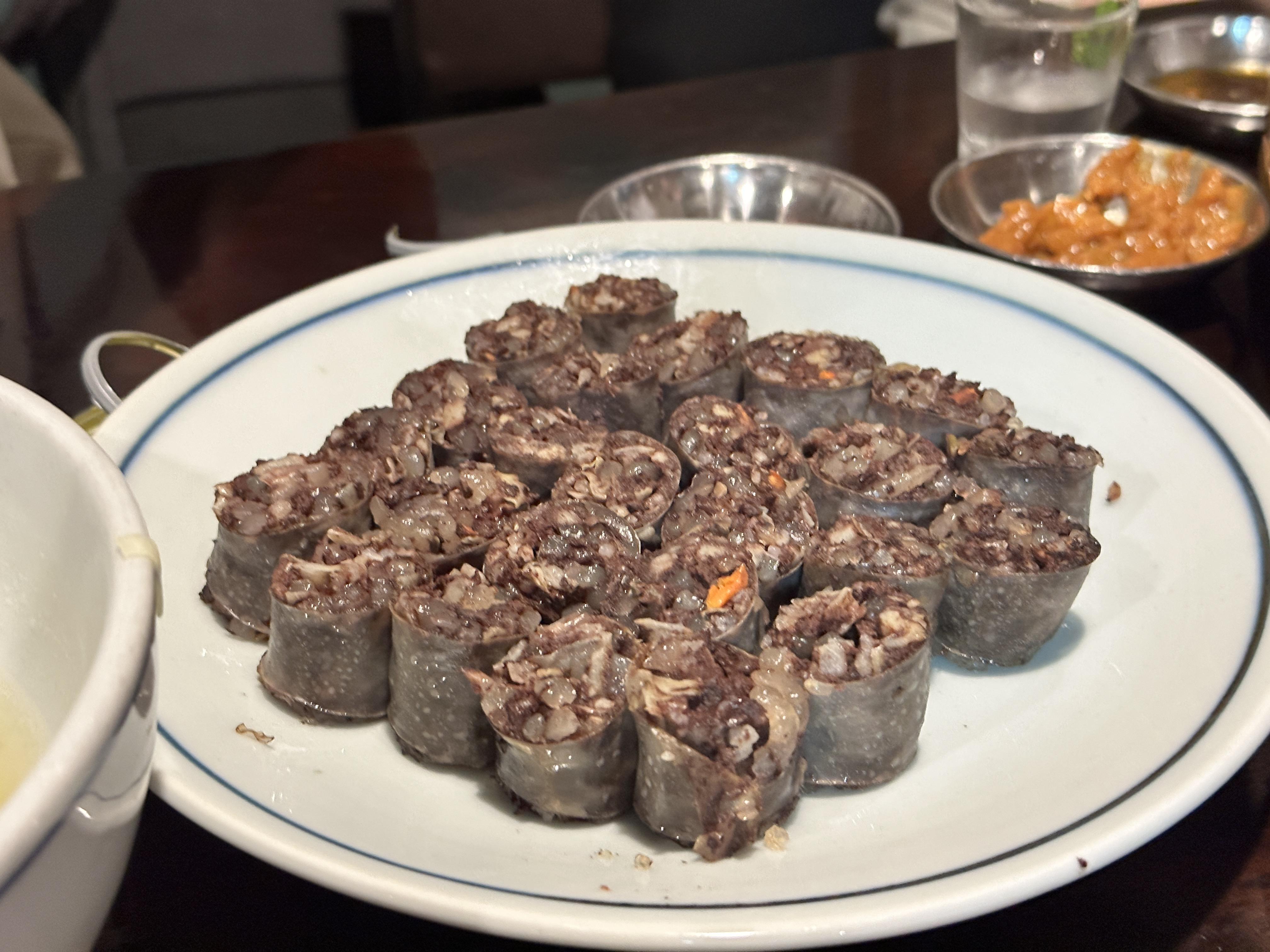 스지찜이랑 돼지국밥만으로는 조금 부족한 것 같아서 피순대를 시켰는데요. 개인적으로 순대를 선호하지는 않지만, 나름 맛있게 먹었습니다. 일반 분식집에서 먹을 때는 비리다고 느끼는 경우도 있었는데요. ‘광화문국밥’에서 먹은 순대는 깔끔했다고 느꼈습니다.